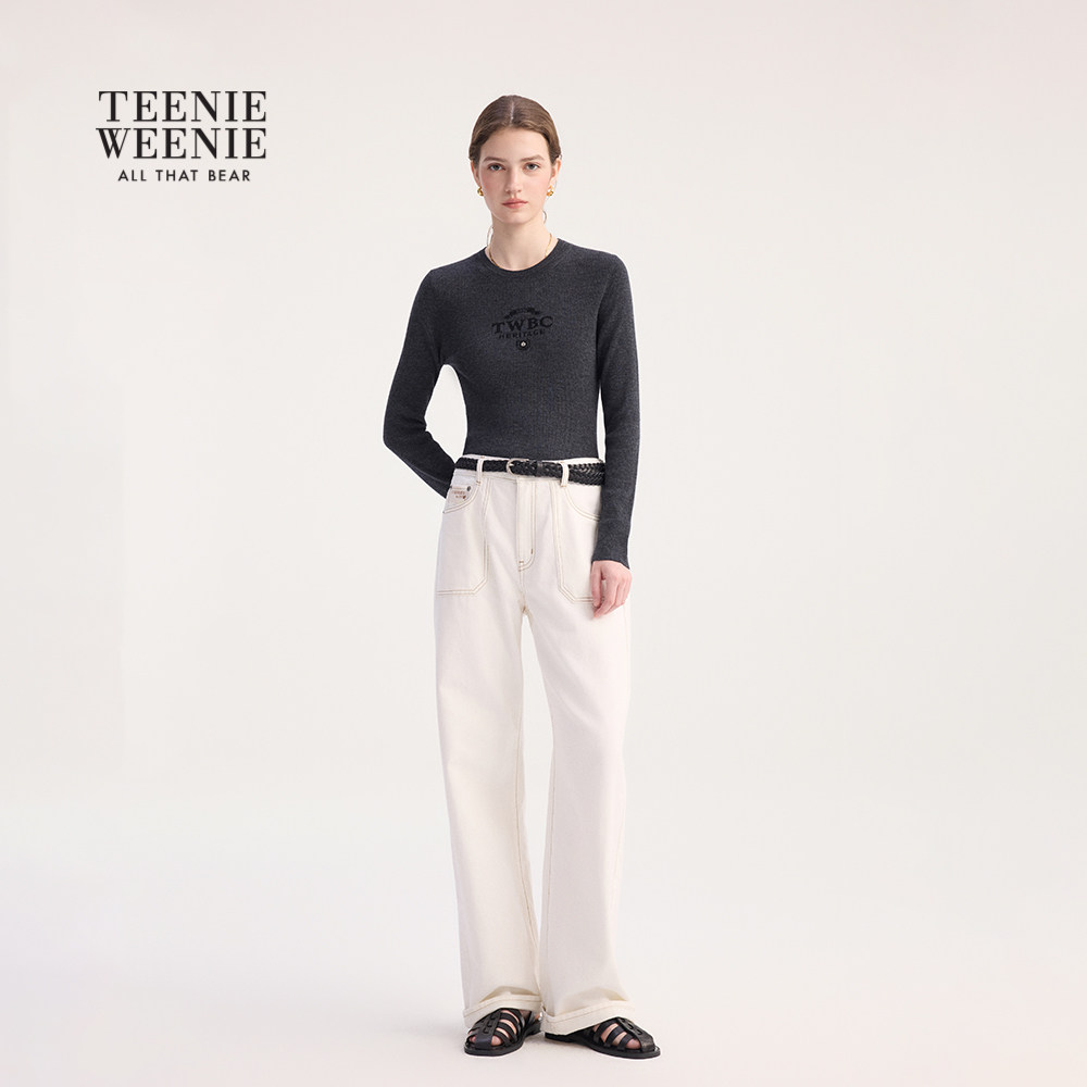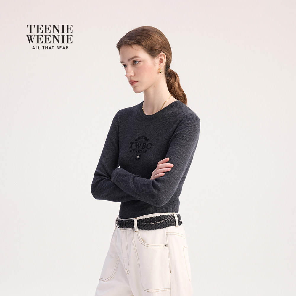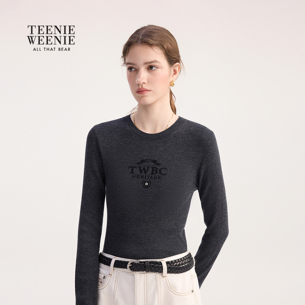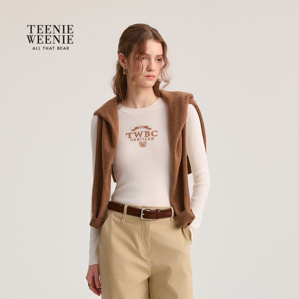 【含绵羊毛】TeenieWeenie小熊女装毛针织衫2025冬舒适修身打底衫