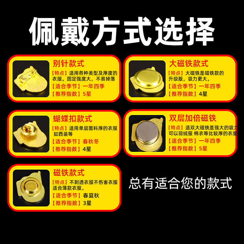 党员胸徽强磁胸针别针标准型新款磁铁吸铁石高档佩戴徽章
