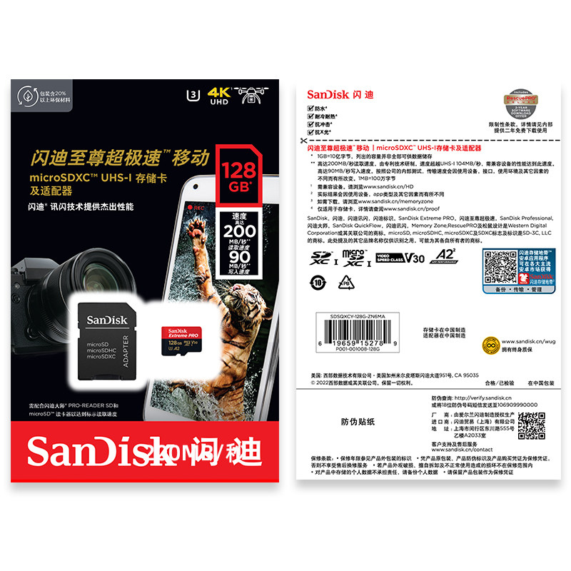 闪迪128G高速TF卡sd卡手机内存卡无人机卡运动相机卡存储4K高清