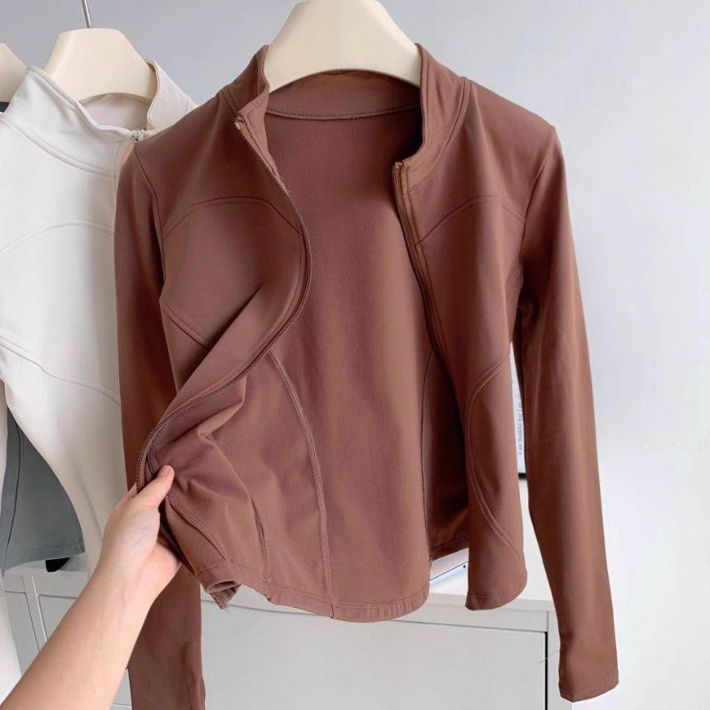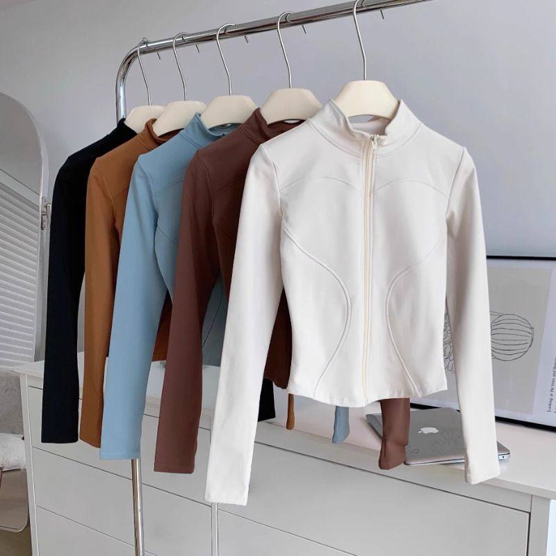 加绒瑜伽服秋冬外套女保暖紧身长袖立领拉链晨跑步修身健身服速干