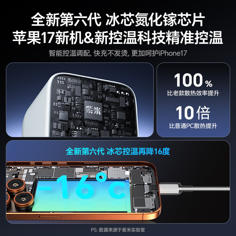 紫米45W迷你氮化镓充电头PD快充头40W适用iPhone17ProMax苹果16专用15Pro华为小米14手机正品Typec充电器套装