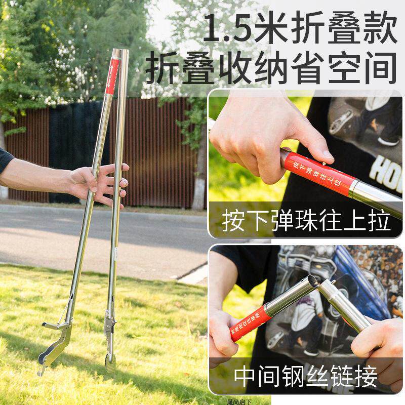 加长伸缩夹捡垃圾的夹子不锈钢火钳捡长柄拾器拾物钳家用狗便厕所
