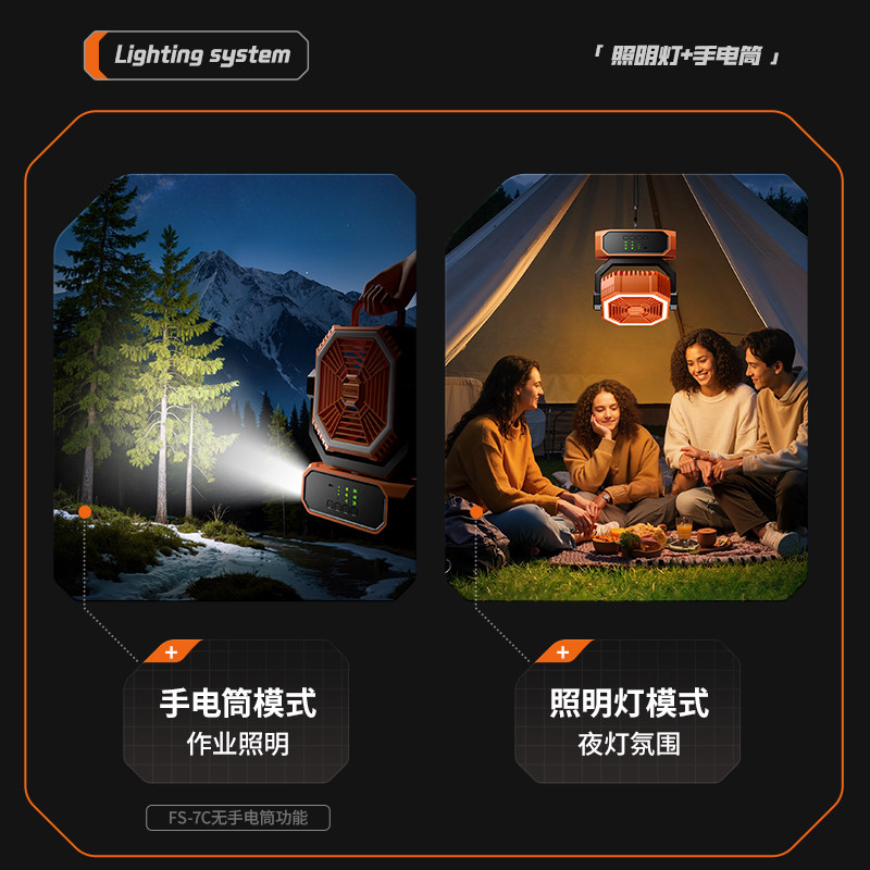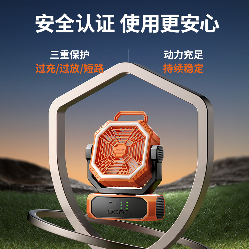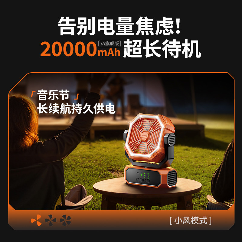 物克户外露营风扇充电式usb制冷车载空调大冷风力超长续航台式小型野营夜灯帐篷便携式可摇头电风扇降温神器