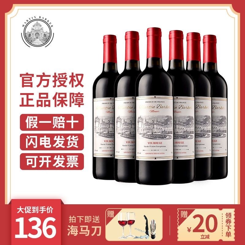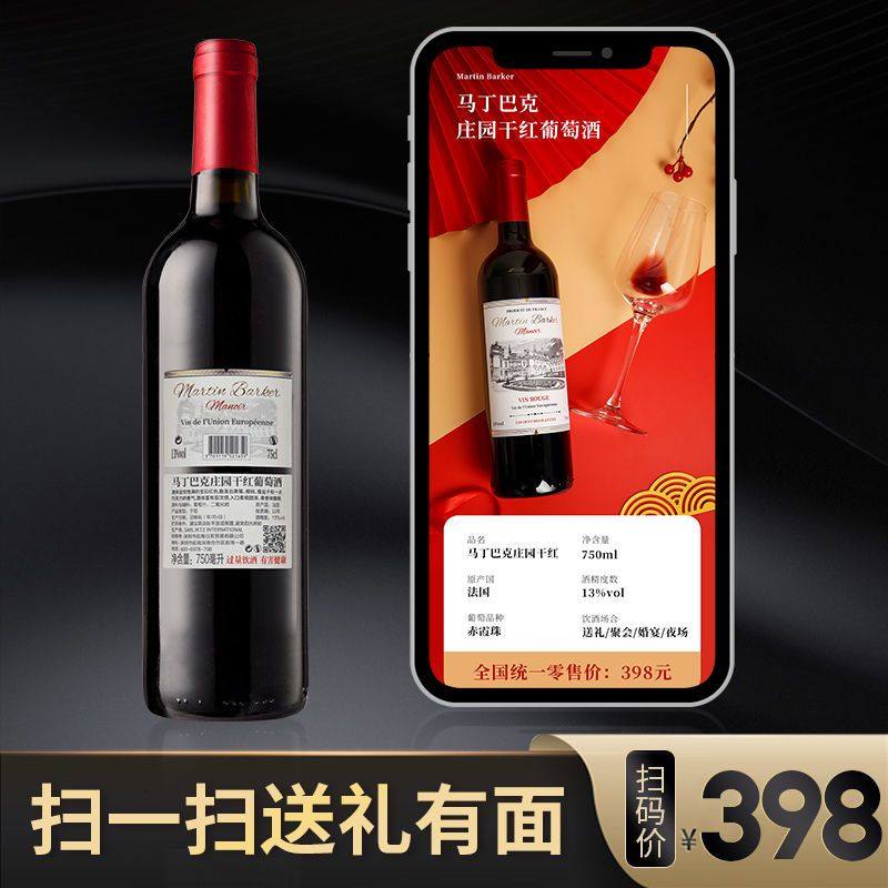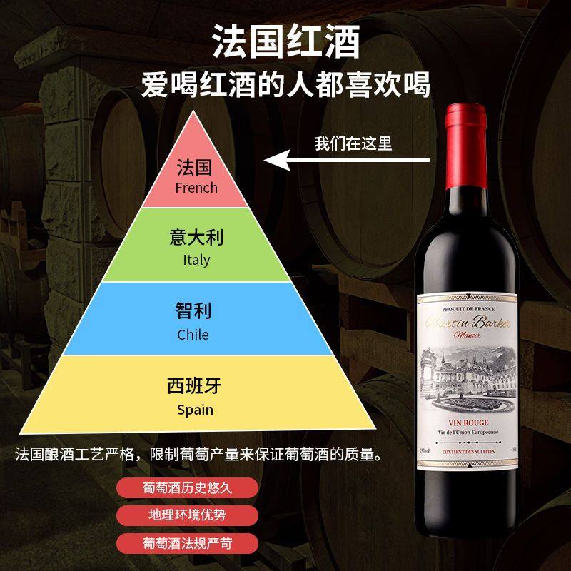 法国进口干红葡萄酒红酒送礼高档大气13度赤霞珠微醺酒酒庄国产