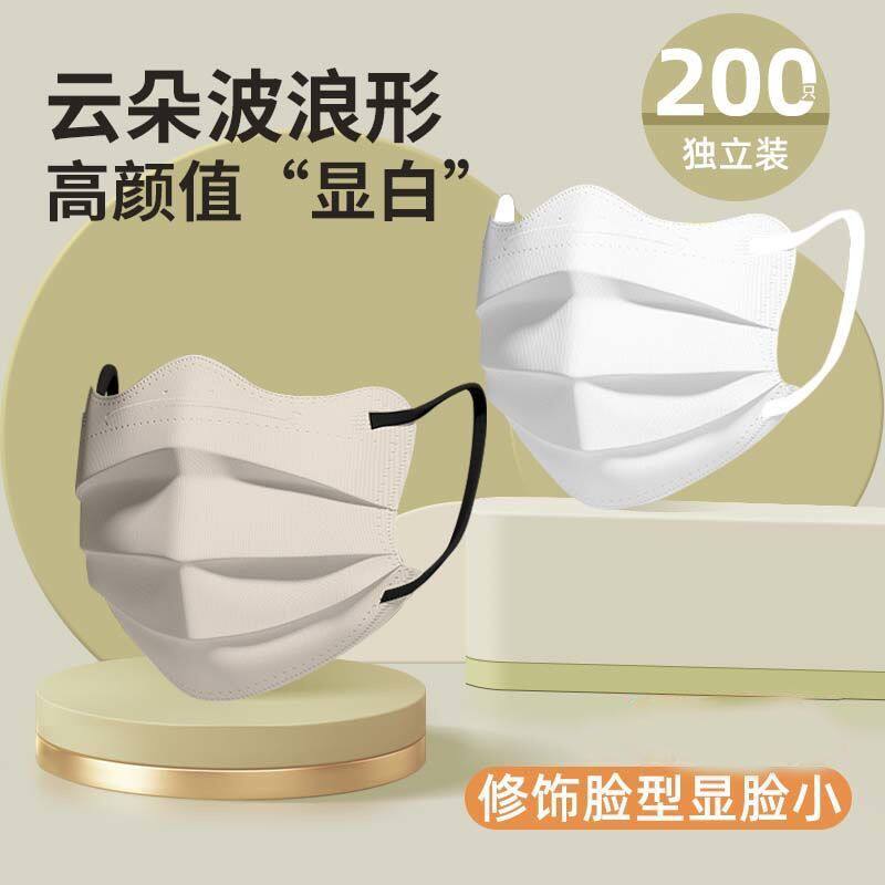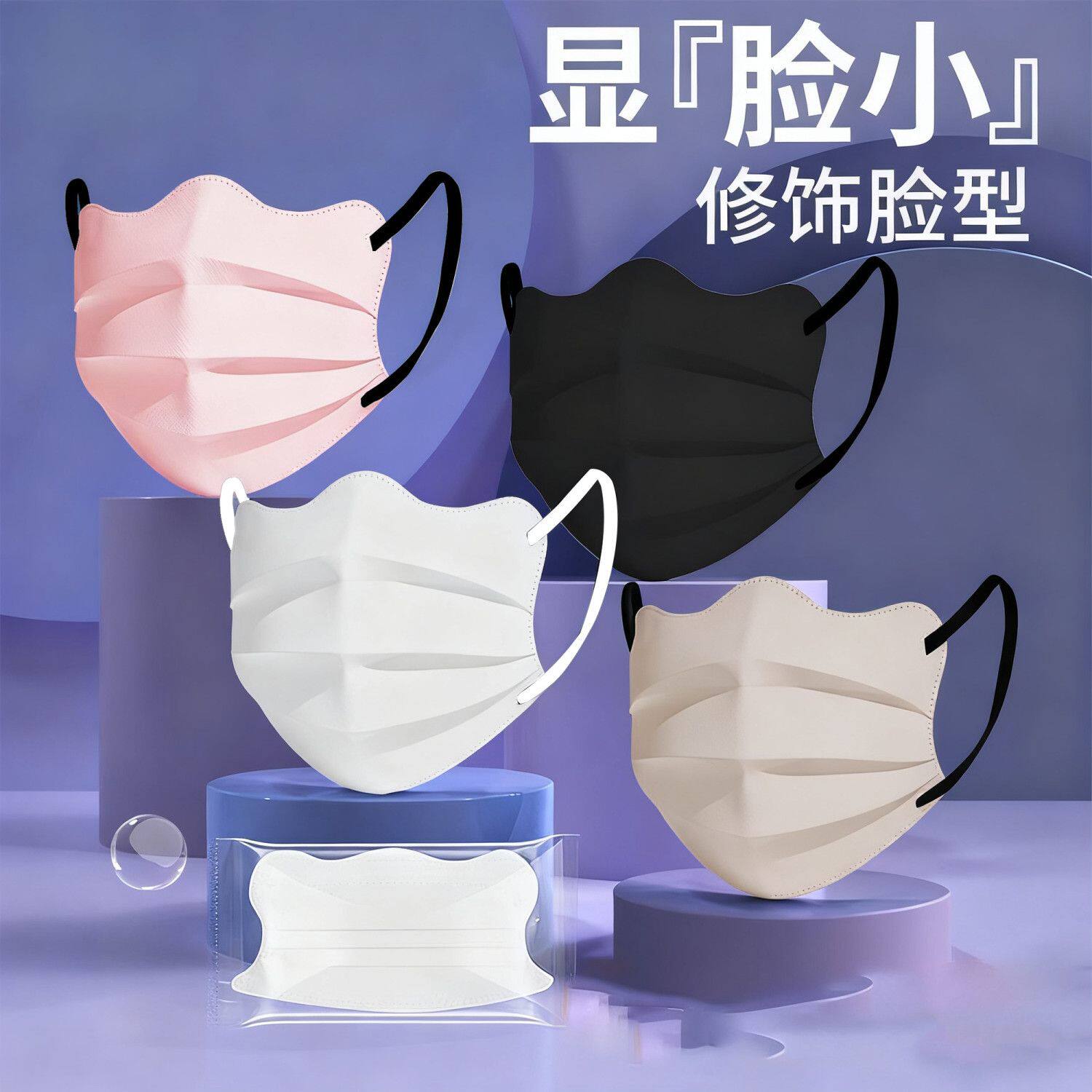 蝴蝶形口罩一次性三层ins高颜值V型显瘦显白显脸小独立包装莫兰迪