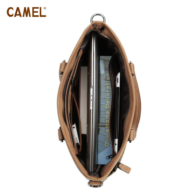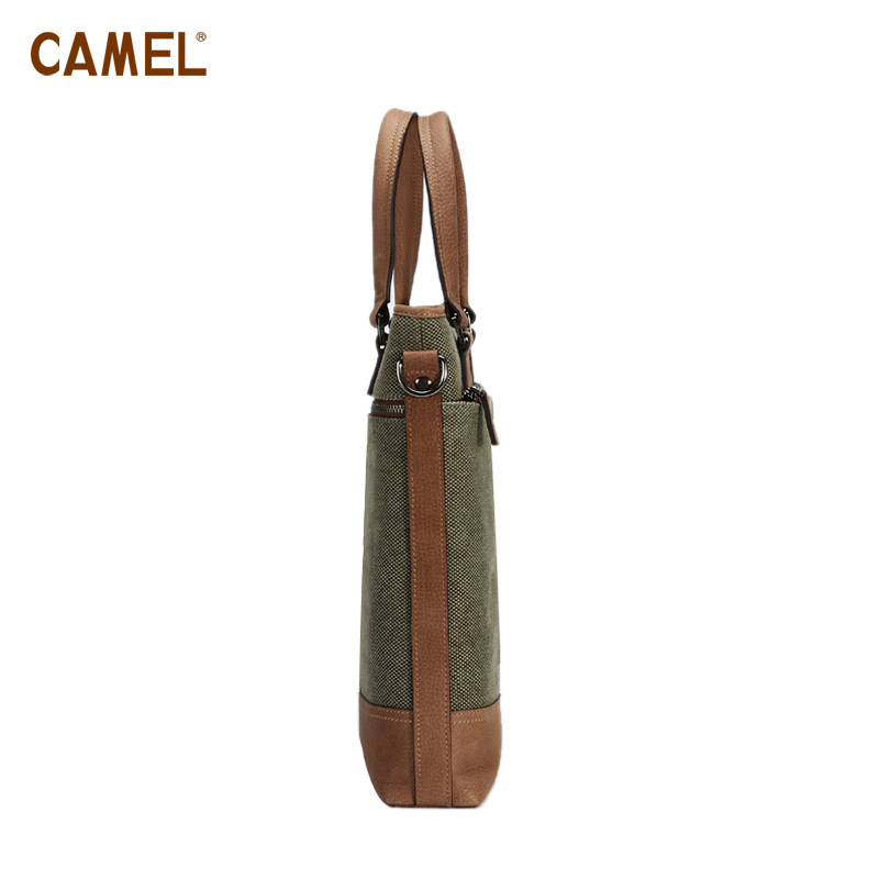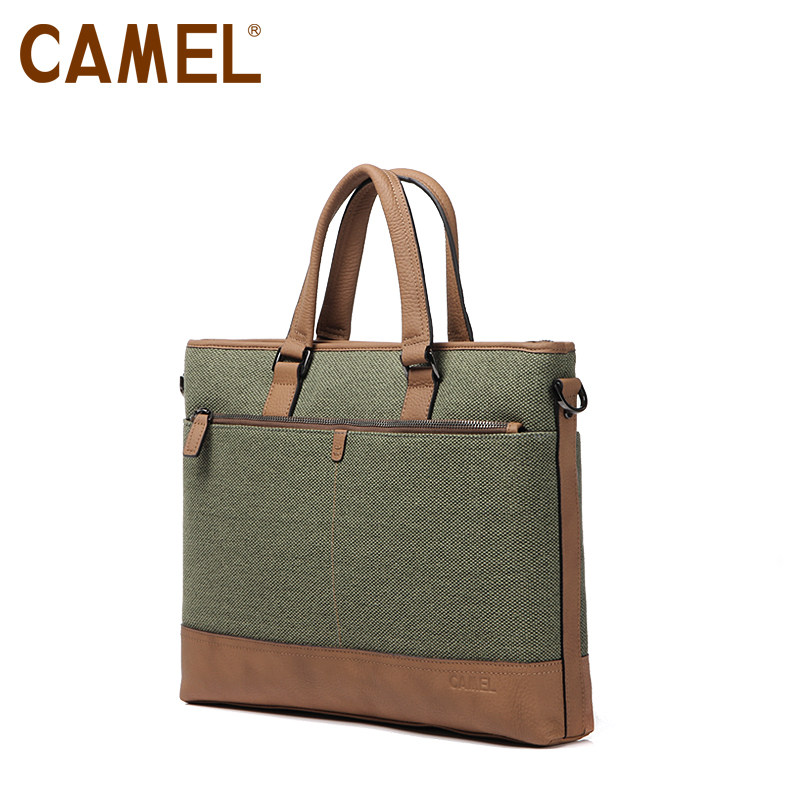【非卖品】camel骆驼 牛皮+帆布手提包 男包男士背包包袋MB1920