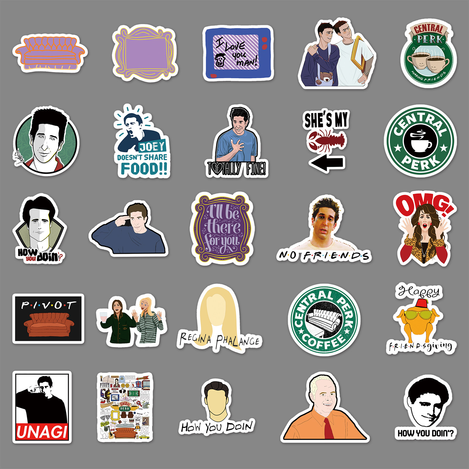 55张老友记行李箱笔记本电脑手机壳冰箱平板滑板吉他防水可移贴纸