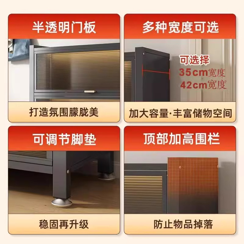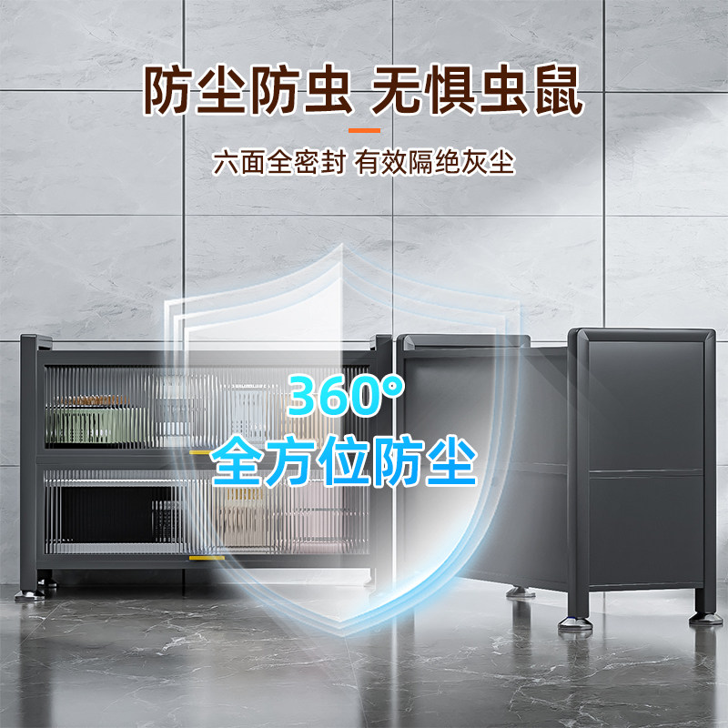 厨房钢制置物架落地多层收纳柜子微波炉家用碗柜多功能橱柜储物柜