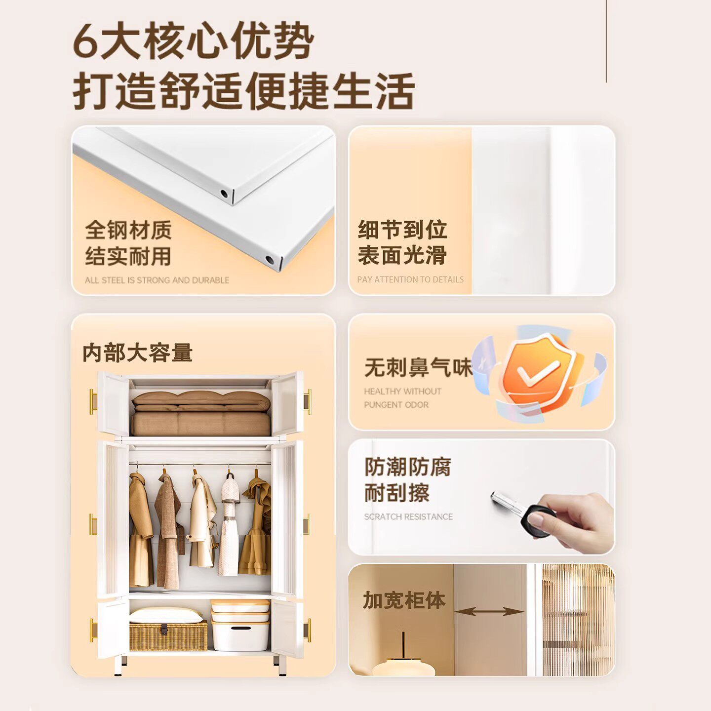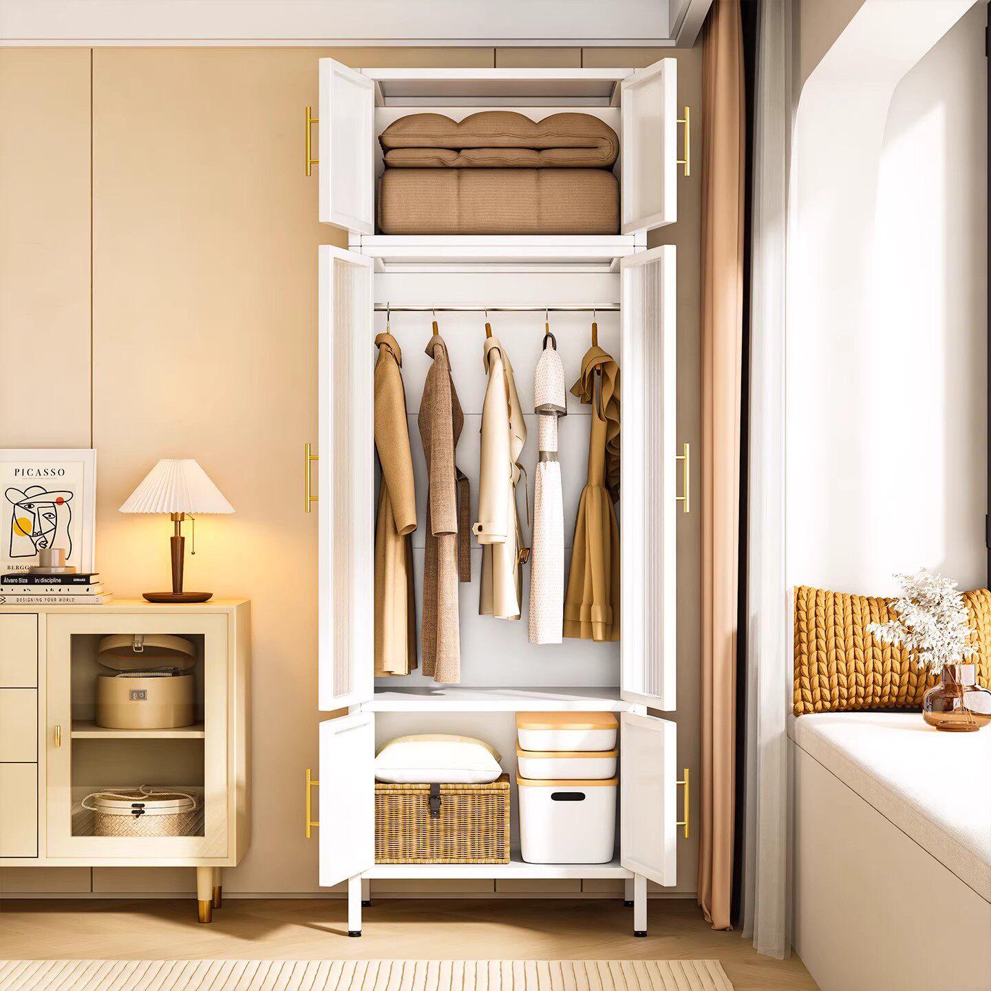 钢制衣柜家用卧室衣物被子收纳柜儿童落地衣橱出租房防尘储物衣架