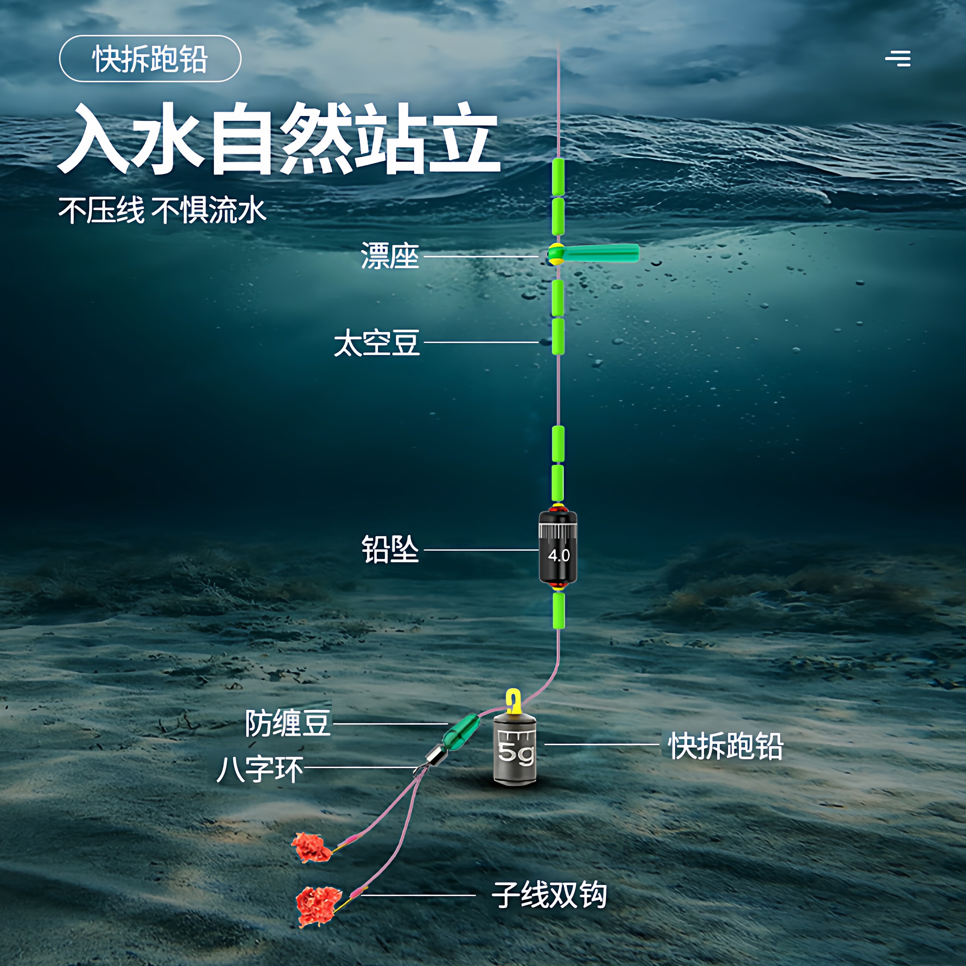 翻板钩铅坠钓鱼专用抗走水海杆远投定风防挂底通心翻板铅坠固饵器