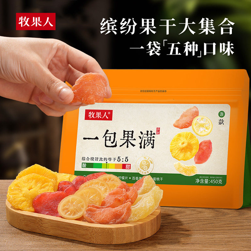 牧果人芒果干一包果满混合果干散装白桃干猕猴桃干百香果干