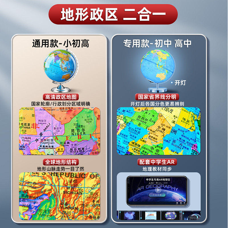 地球仪正版学生用初中生小学生专用3d立体磁悬浮ar智能大号儿童启蒙地图地形摆件模型世界官方旗舰店生日礼物