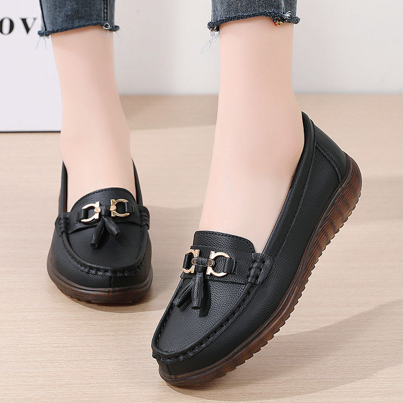 日泰头层牛皮女单鞋秋季厚底小皮鞋百搭通勤鞋妈妈软底真皮乐福鞋
