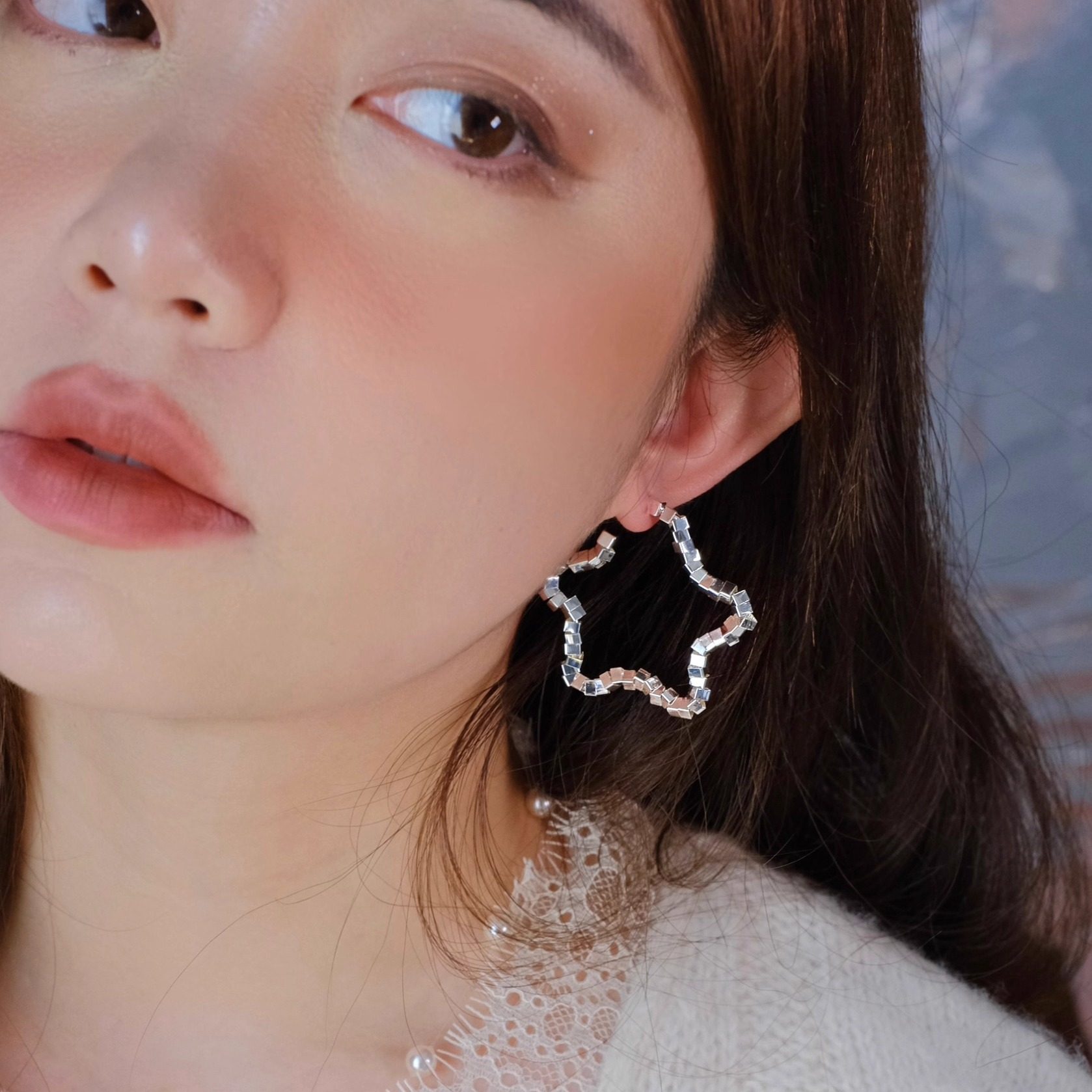 《阳光下的星星》爆闪!冷性风个性夸张小众银色大圈耳环耳夹耳饰