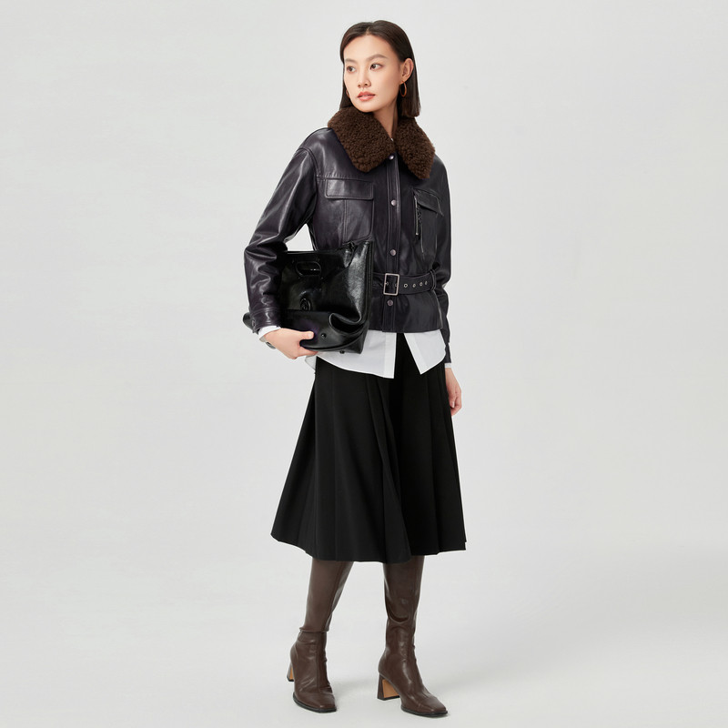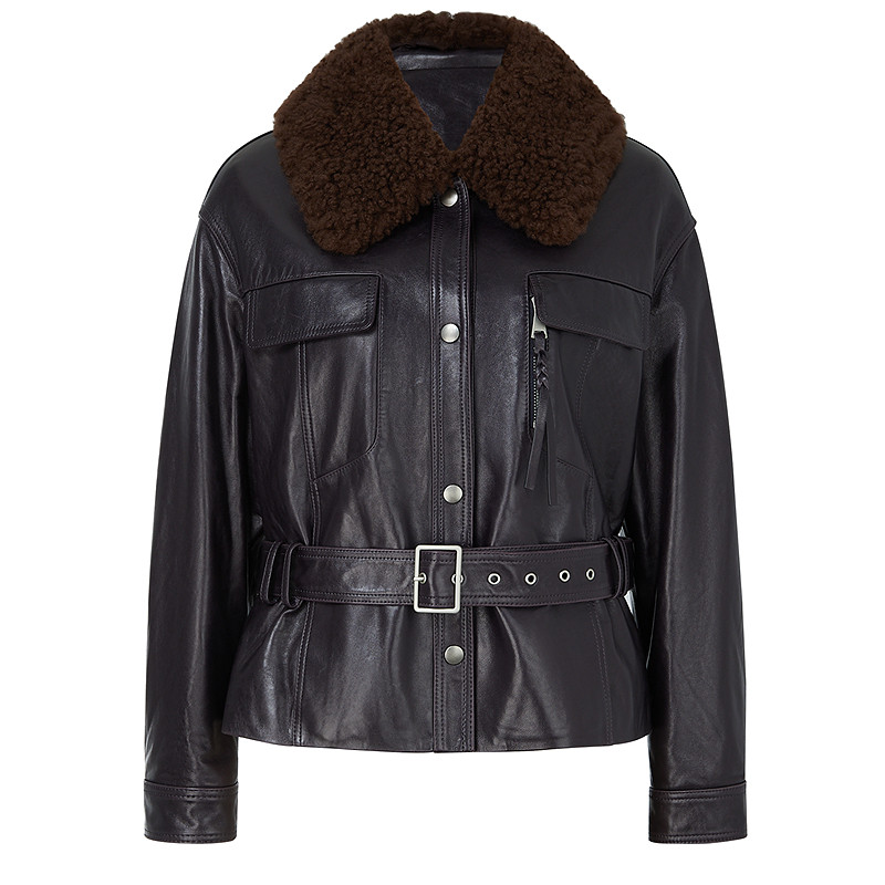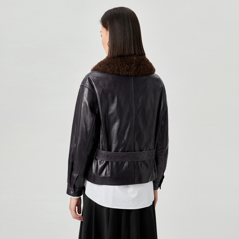 NAERSI娜尔思皮羽绒外套机车毛领皮衣显瘦腰带2025年冬季新款女