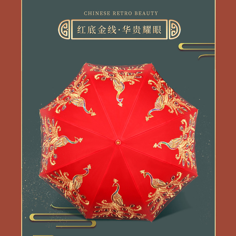 结婚红伞婚伞新娘伞婚庆中式出门红色婚礼伞陪嫁红雨伞轻奢出嫁伞