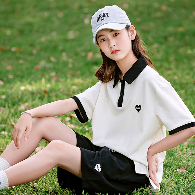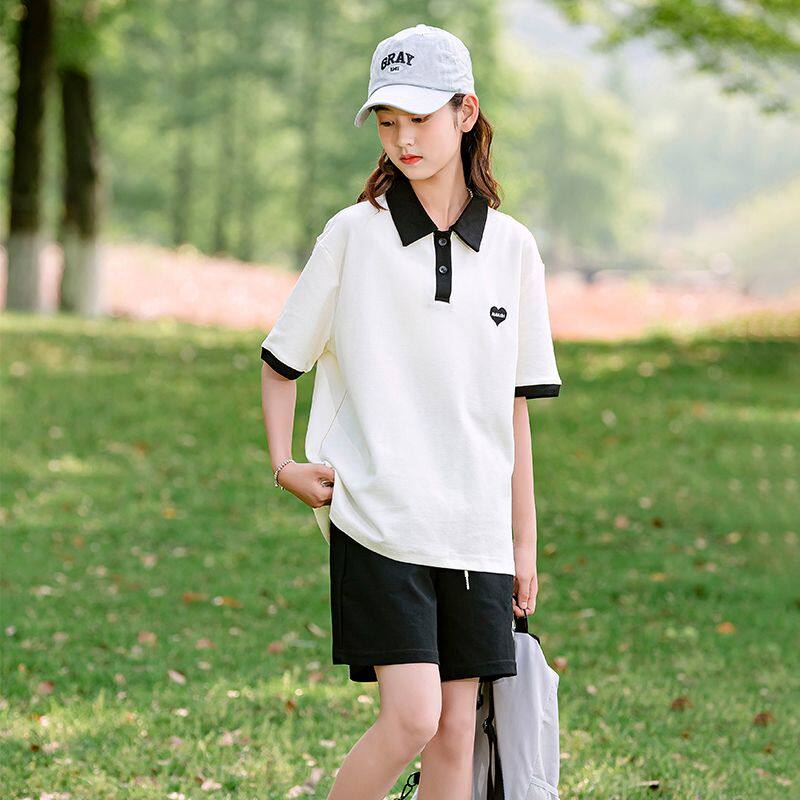 女童夏季套装2026最新款韩范休闲POLO领短裤短袖时尚运动两件套潮
