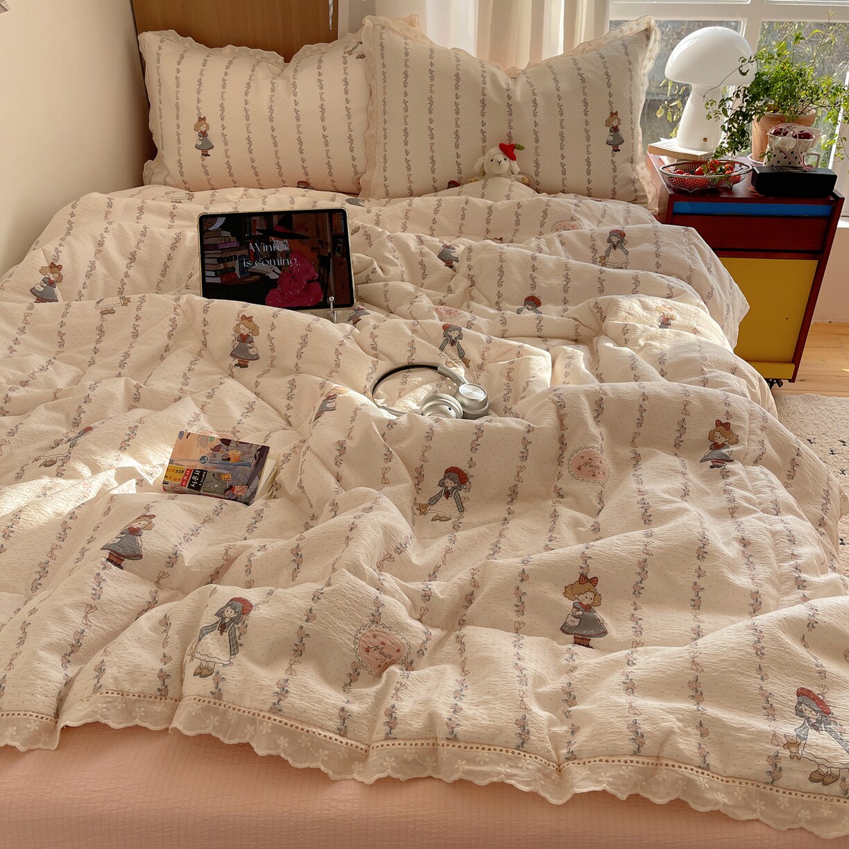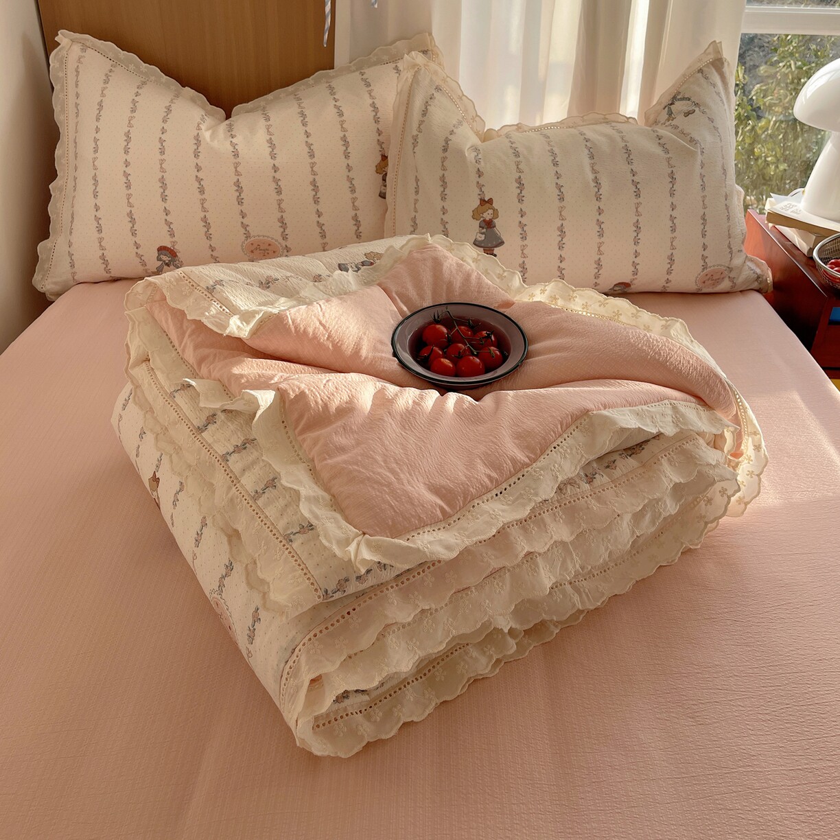 全棉花边皱皱纱夏被夏凉被空调被夏被四件套纯棉夏天夏季被子被芯