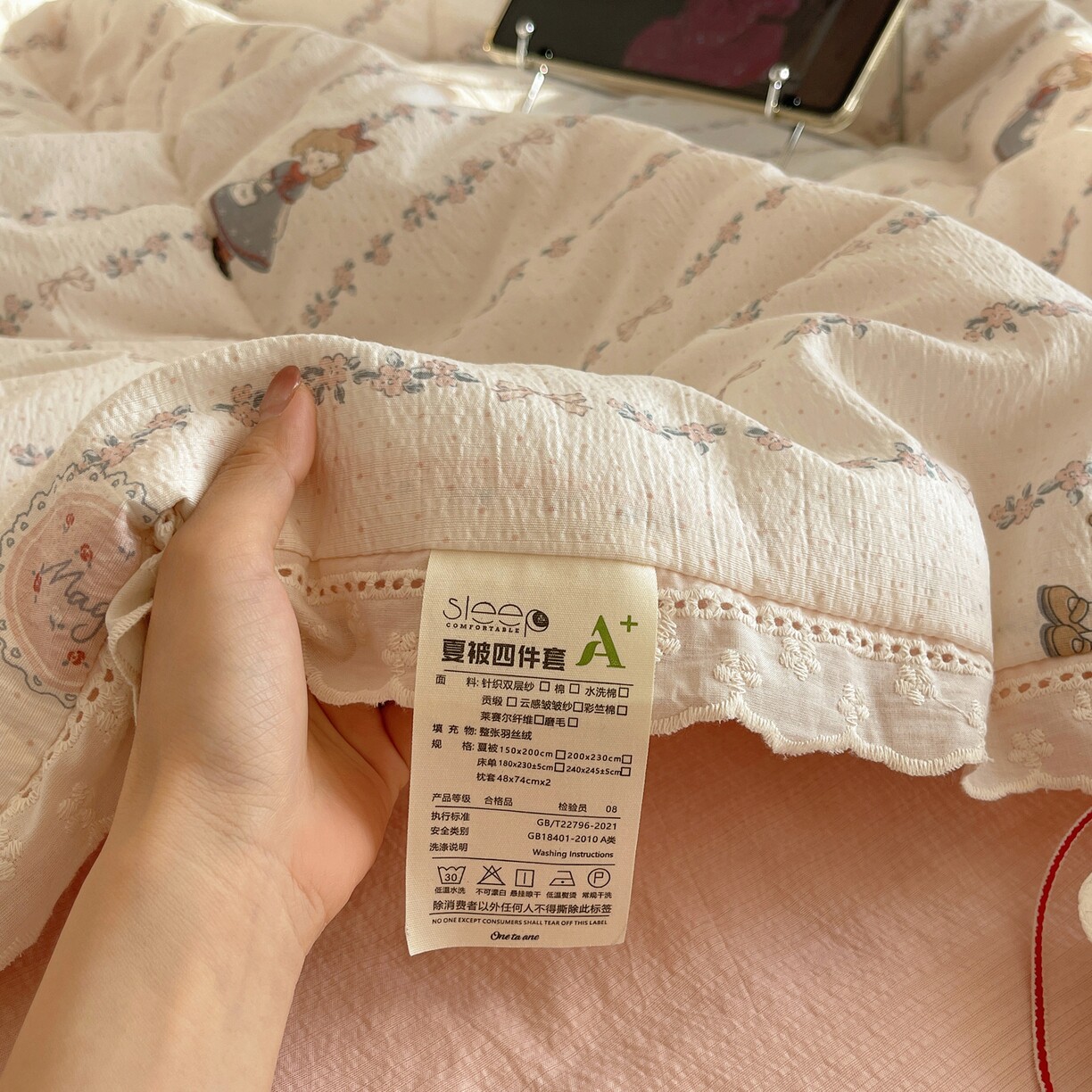 A类全棉双层纱夏凉被四件套空调被可机洗薄款被子夏季夏被三件套4