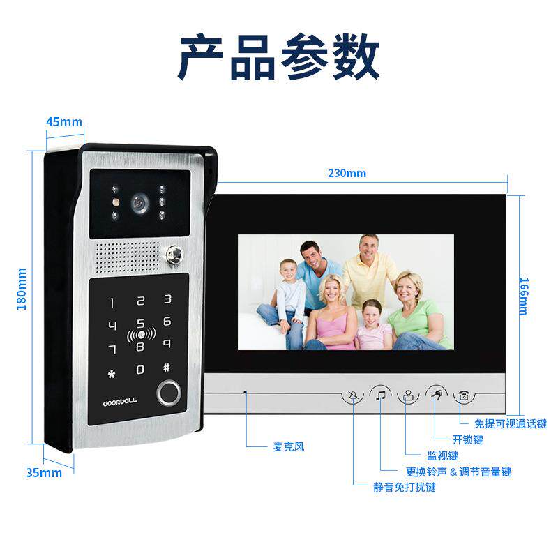 真地可视对讲门禁机指纹刷卡密码三合一智能7英寸门禁系统KS300