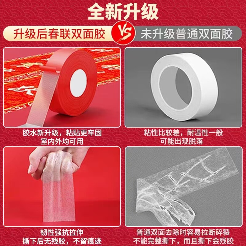 贴春联双面胶撕下不留痕红色网格布基婚庆婚房装饰气球喜字福字年画强力胶带耐高温不留胶神器粘性家用