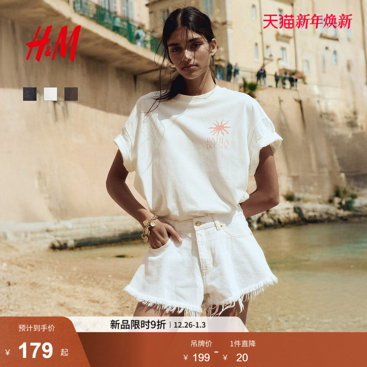 HM女装牛仔裤2025冬季新款高腰宽松通勤度假毛边牛仔短裤1266902