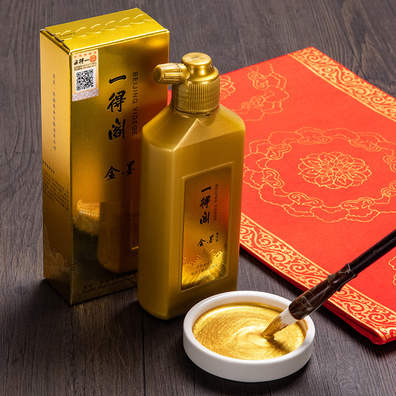 一得阁金墨汁书法专用金色墨汁官方旗舰店大瓶金黄色默水写对联高级黄色墨水黄墨春联金粉防水金墨毛笔金墨水