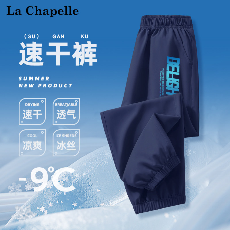 拉夏贝尔男童速干防蚊裤2025新款儿童冰丝凉感裤子男孩运动长裤薄