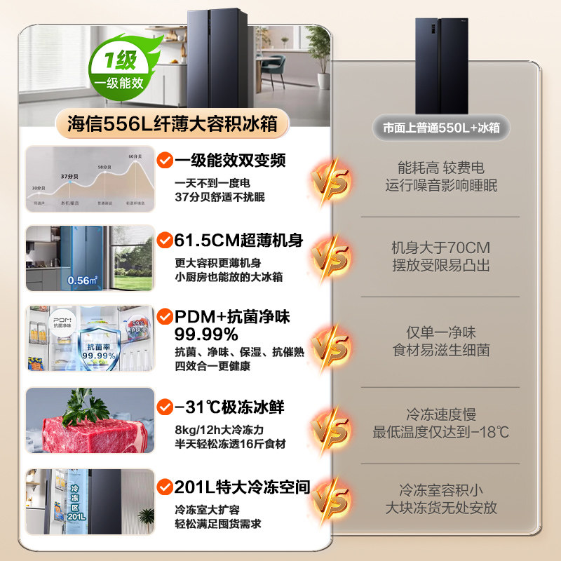 海信540+L对开双开门冰箱一级能效风冷无霜家用大容量换新补贴