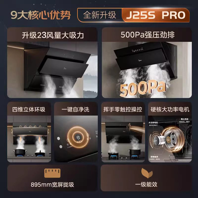 美的小型家用厨房大吸力免拆洗排抽油烟机J25Spro侧吸官方正品