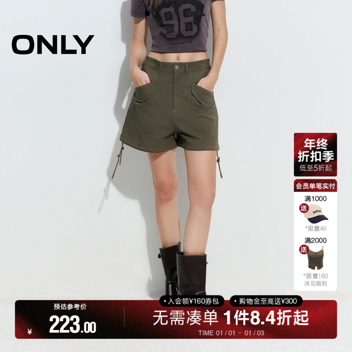 ONLY2025夏季新款美式高腰A字军绿色休闲口袋纯色短裤休闲裤女