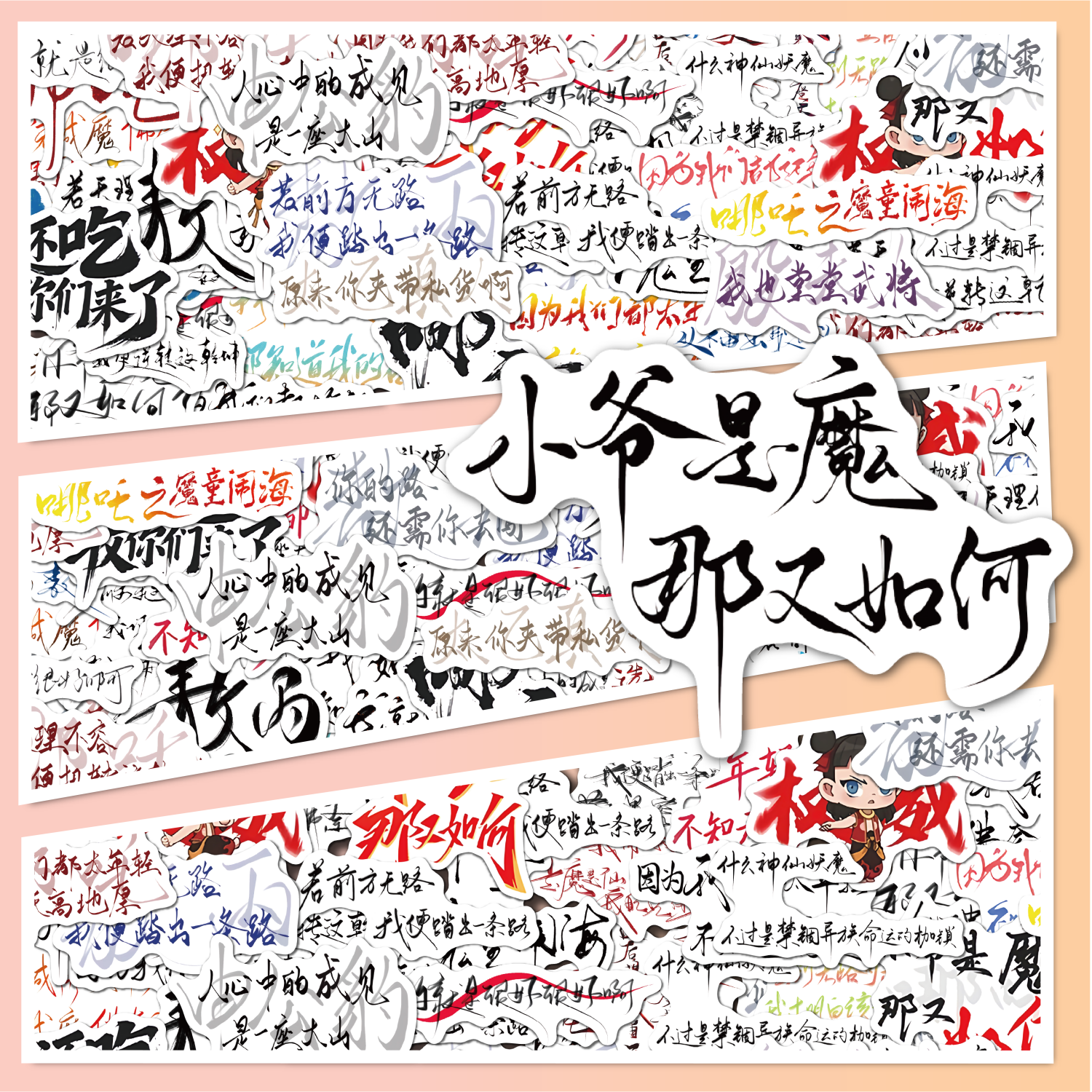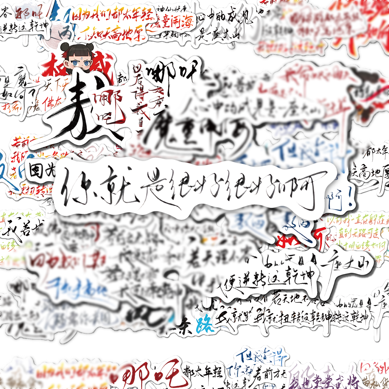 超燃哪吒语录贴纸哪吒之魔童闹海帅气可爱藕饼手写手账手机壳diy防水