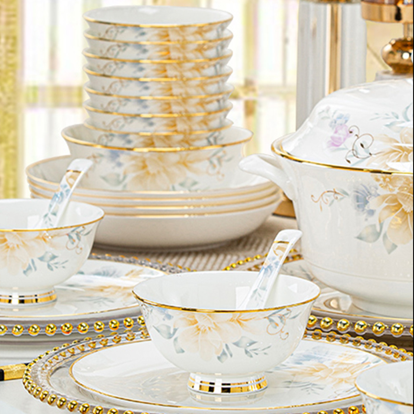 高级感碗碟套装家用2025新款高颜值餐具陶瓷碗盘子乔迁碗筷碗具