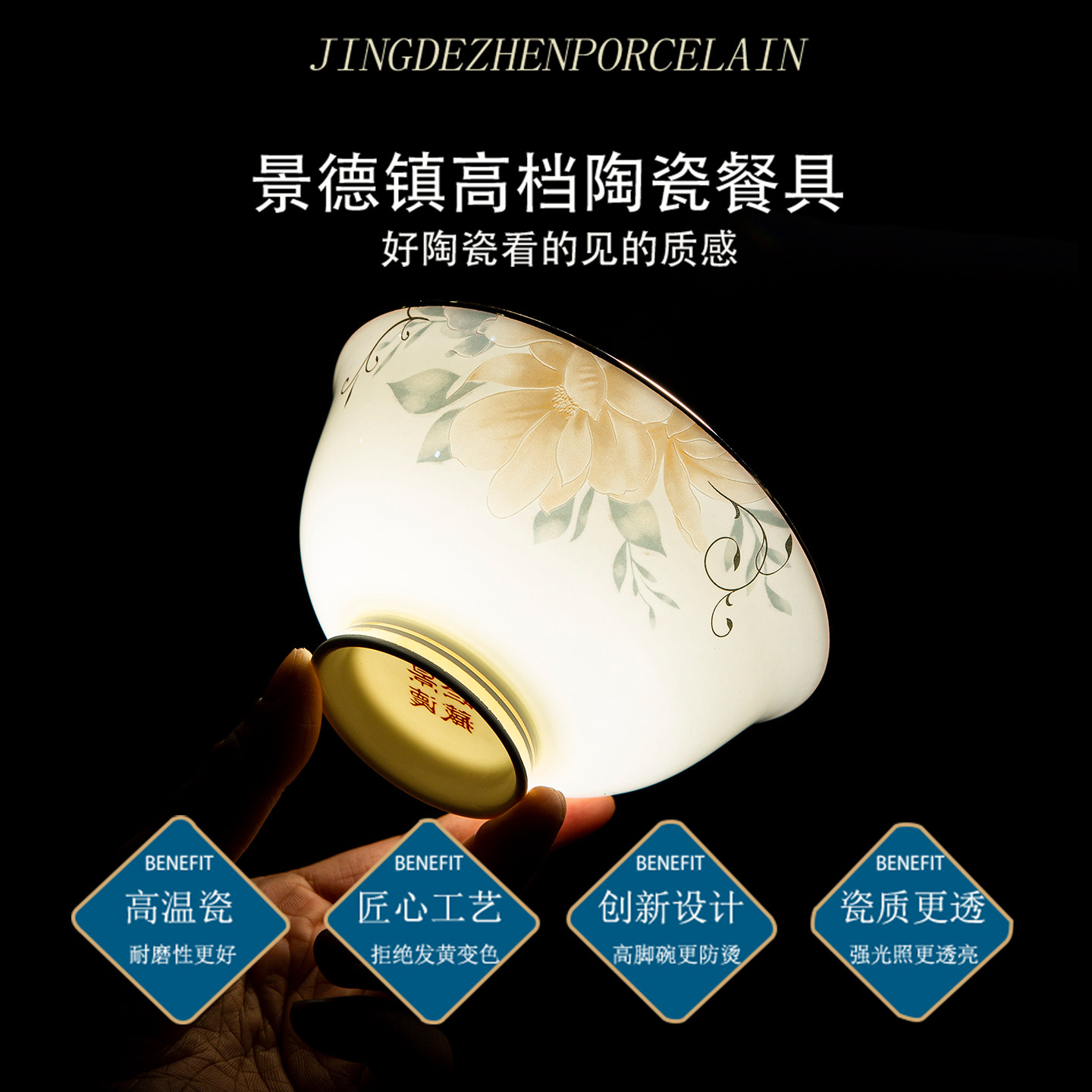 碗家用2025新款釉下彩景德镇餐具高级感乔迁中式碗盘陶瓷碗碟套装