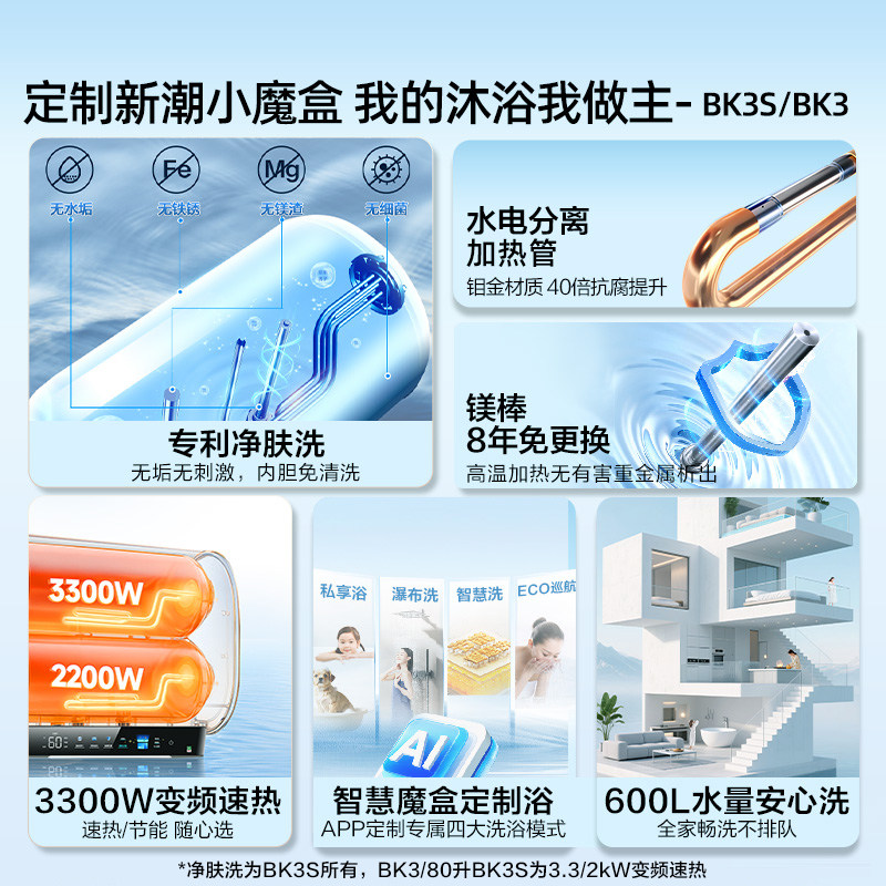 海尔电热水器双胆小魔盒家用电净肤洗官方卫生间洗澡60升一级BK3S