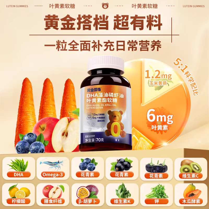 黄金搭档DHA藻油蓝莓叶黄素酯软糖青儿童成人护眼正品官方旗舰店