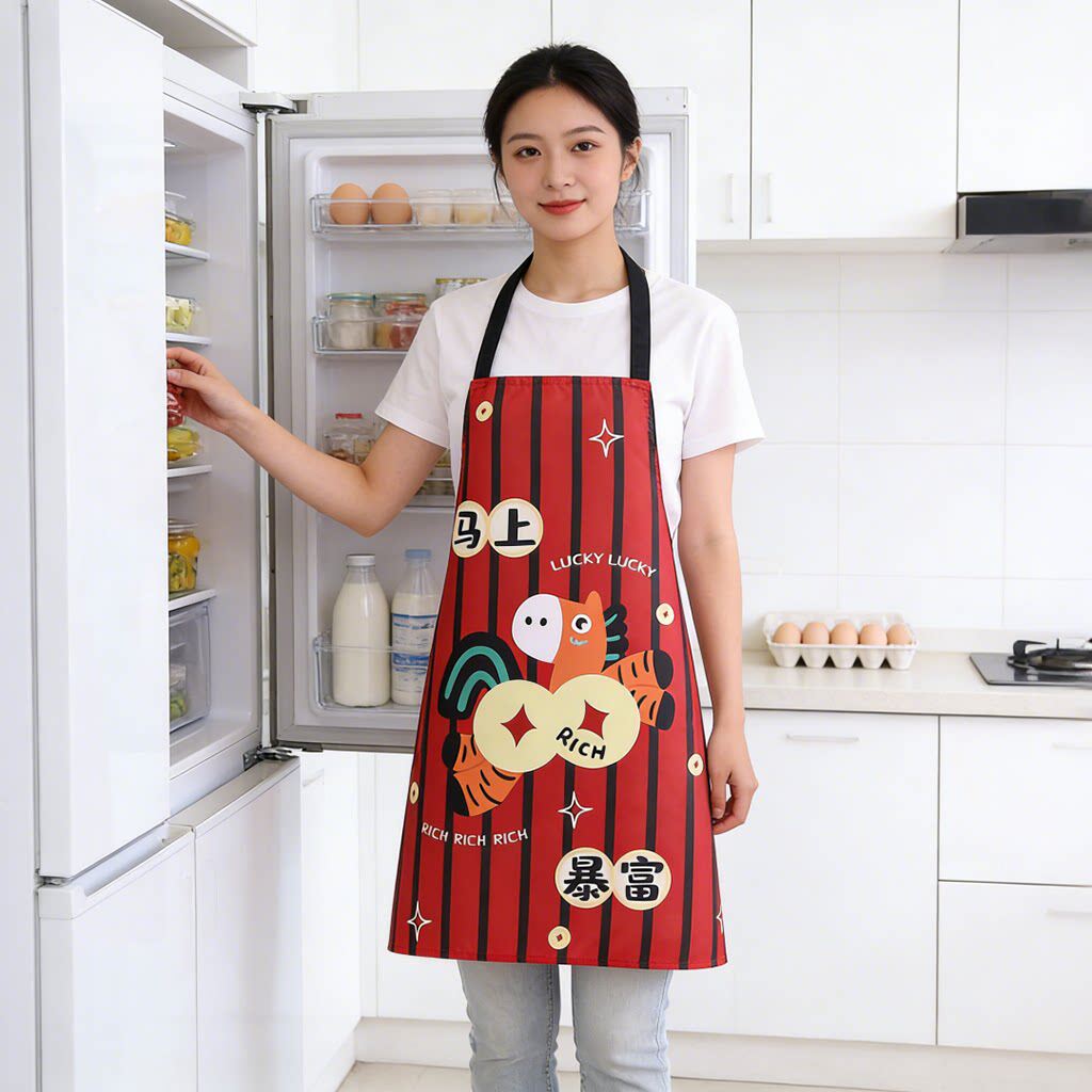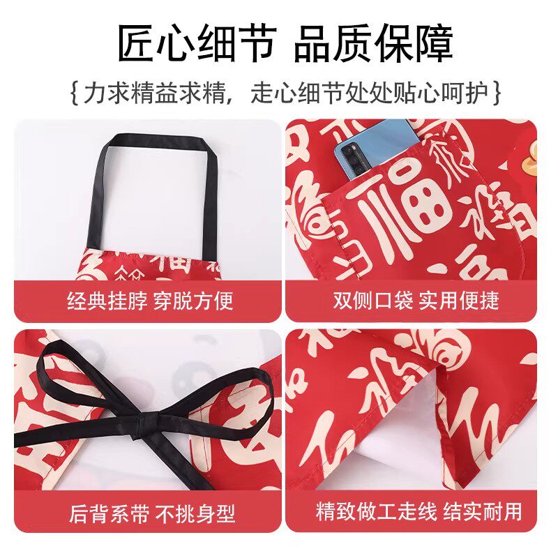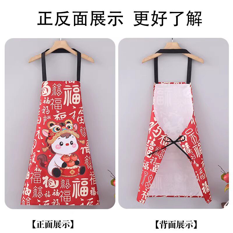 新年喜庆小马围裙女时尚防水做饭厨房防污家用工作服罩衣围腰餐饮