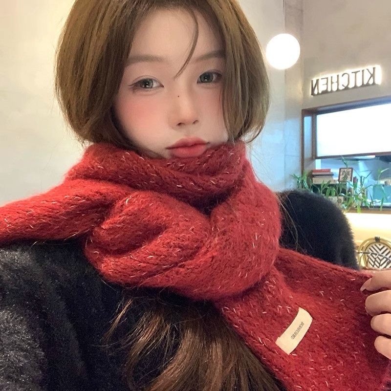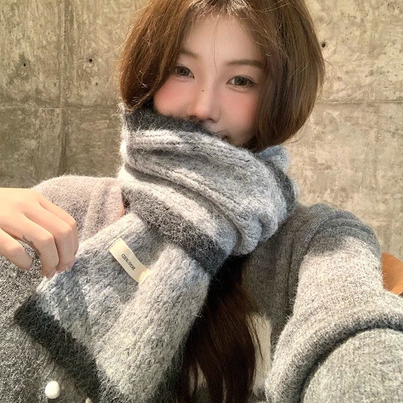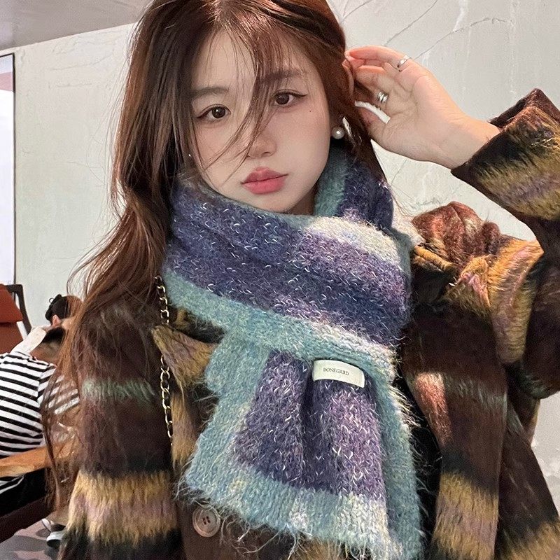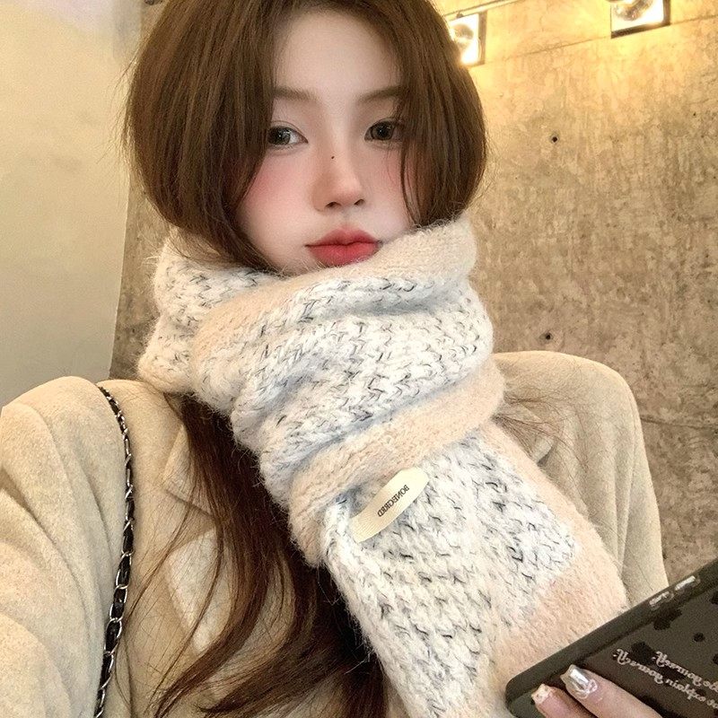 软糯针织韩系氛围感围巾女秋冬季2025新款加厚保暖拼色护颈围脖冬