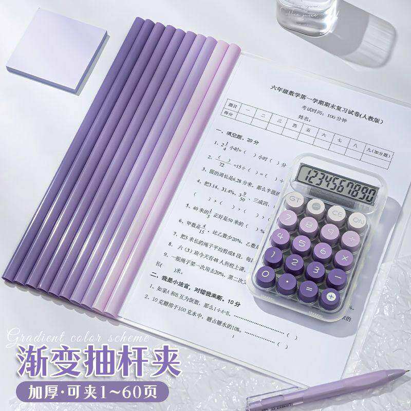 渐变色抽杆夹文件夹a4加厚学生大容量试卷夹书皮书夹子透明水滴夹