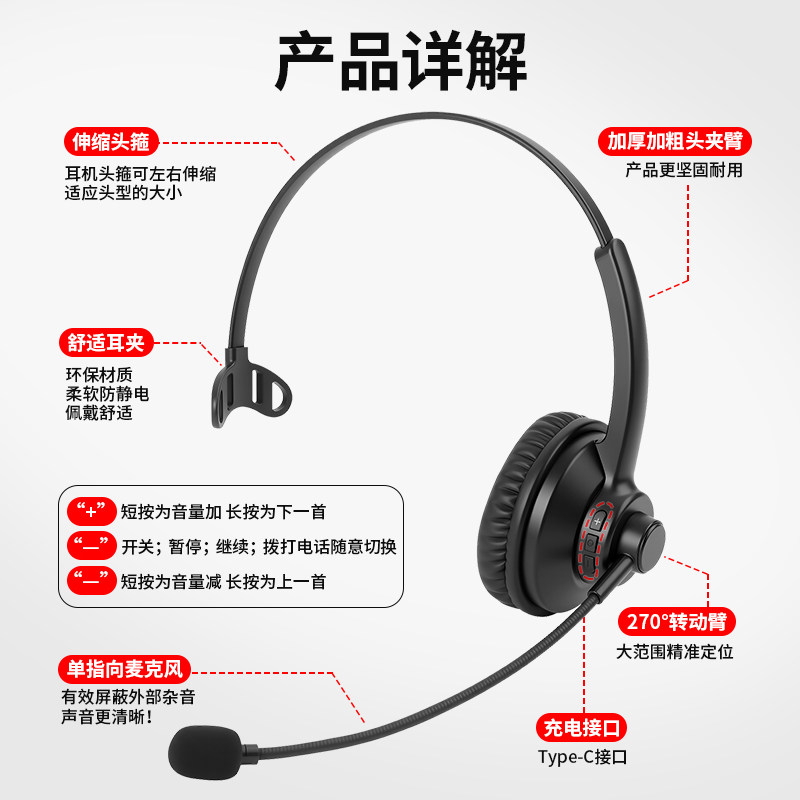 无线头戴蓝牙话务通话耳机客服手机笔记本电脑主播教学网课耳机
