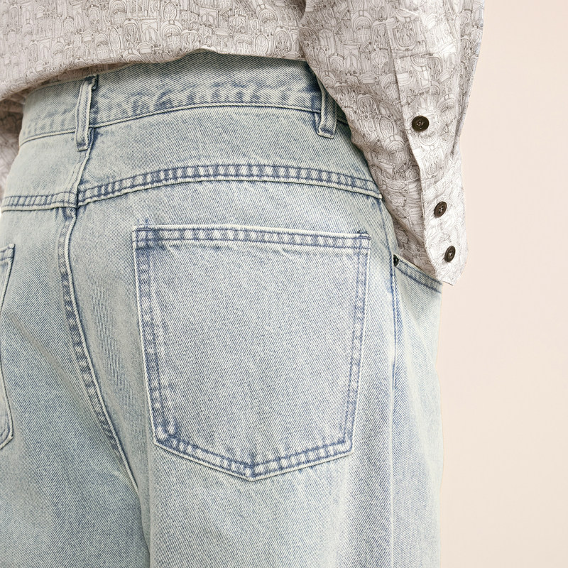水洗牛仔宽松直筒长裤,对身材包容性很好