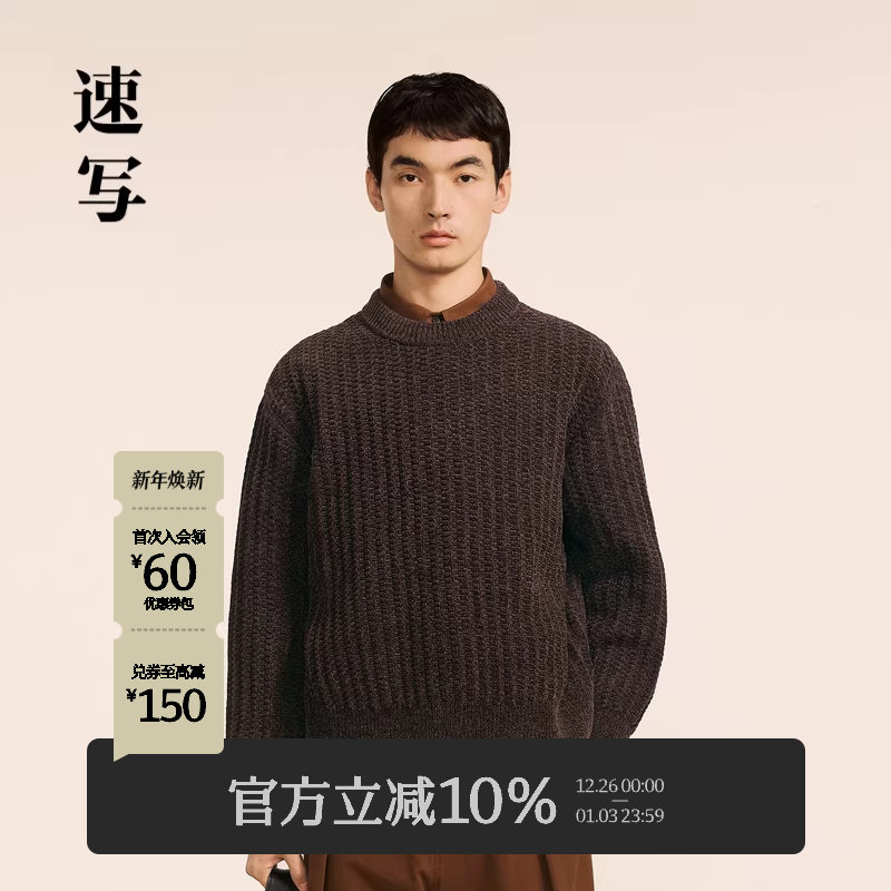 速写男装秋冬新款休闲宽松毛衫宽松圆领套头复古舒适时尚潮流上衣