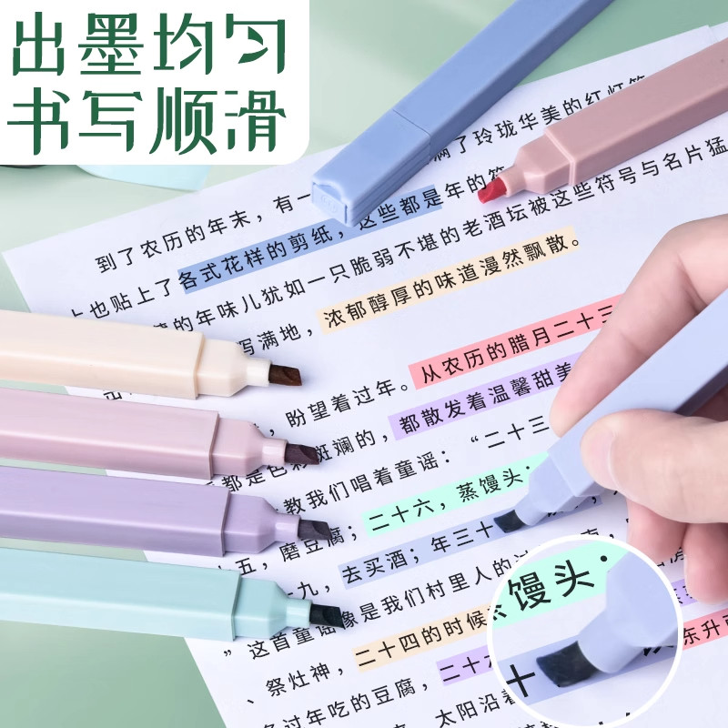 淡色护眼重点记号笔大容量 莫兰迪彩色荧光标记笔浅色粗头套装清