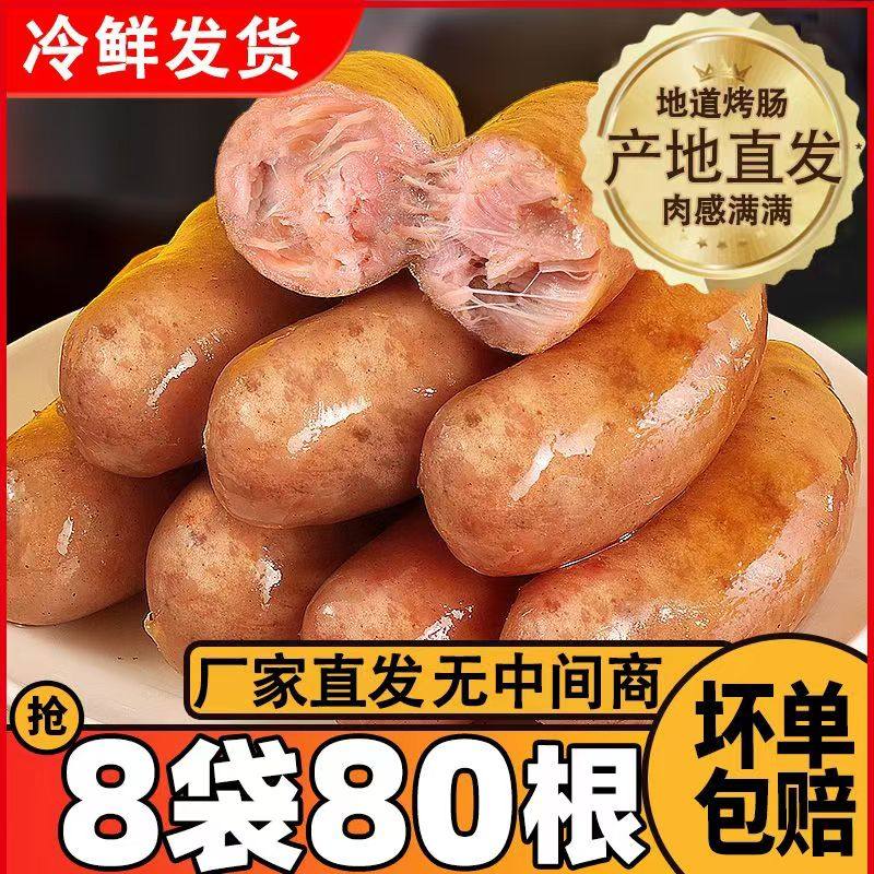 热狗烤肠台湾风味香肠纯肉火腿肠台式脆骨烧烤整箱批发手抓饼商用