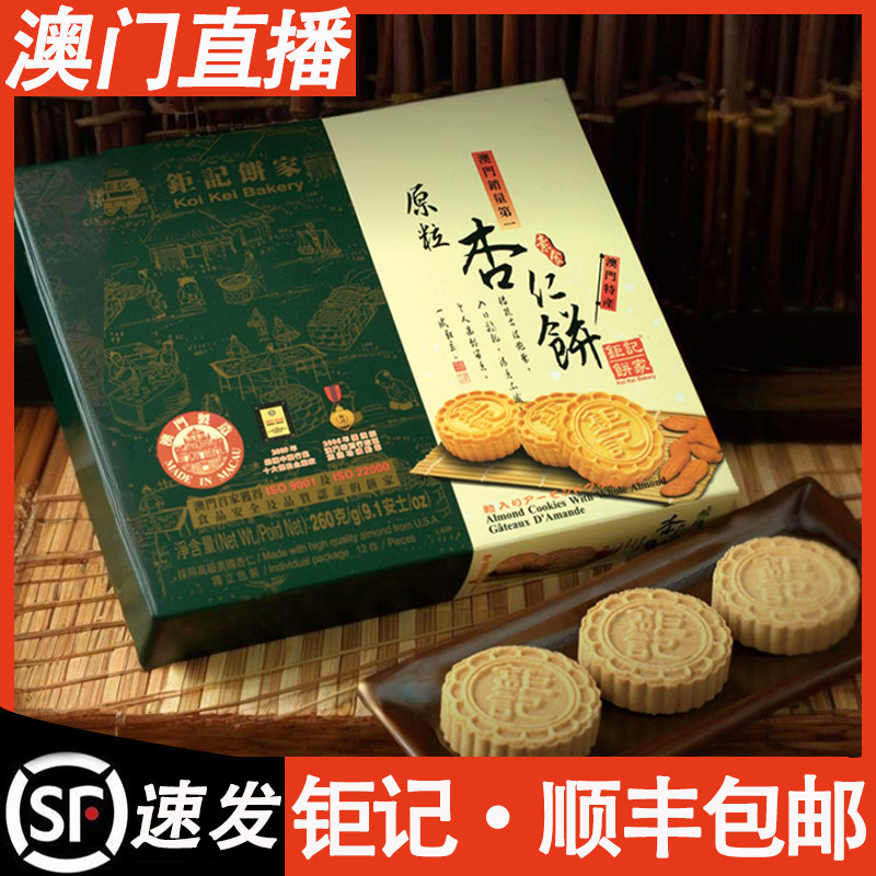 澳门顺丰钜记手信特产原粒黑芝麻海盐杏仁饼进口零食休闲雪花饼干
