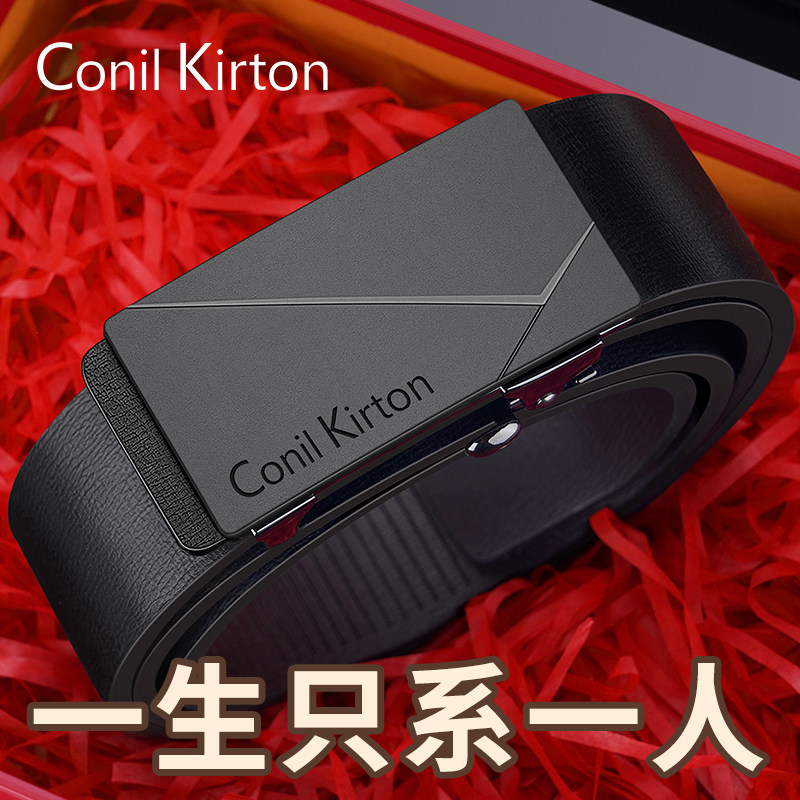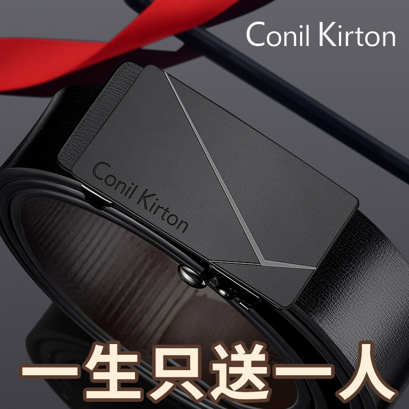 ConilKirton男士皮带真牛皮无牙内穿不漏尾自动扣裤腰带商务休闲