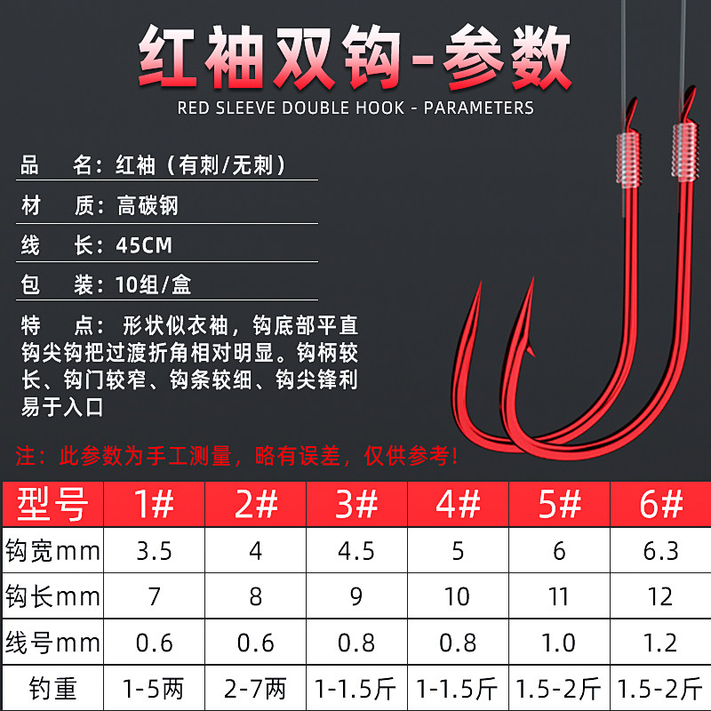 红袖鱼钩绑好子线双钩成品套装钓鱼钩野钓赤袖短子线袖钩鱼具用品