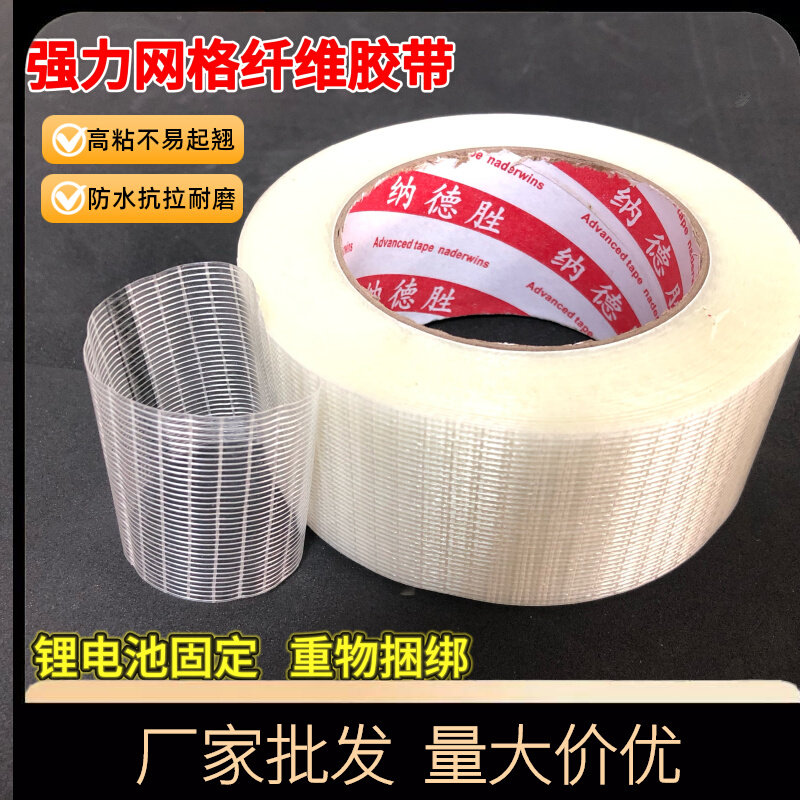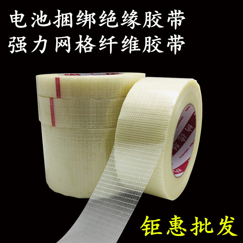 强力透明条纹网格纤维胶带批发单面高粘玻璃纤维胶锂电池家电冰箱航模配件固定重物捆扎包装耐拉耐磨纤维胶带