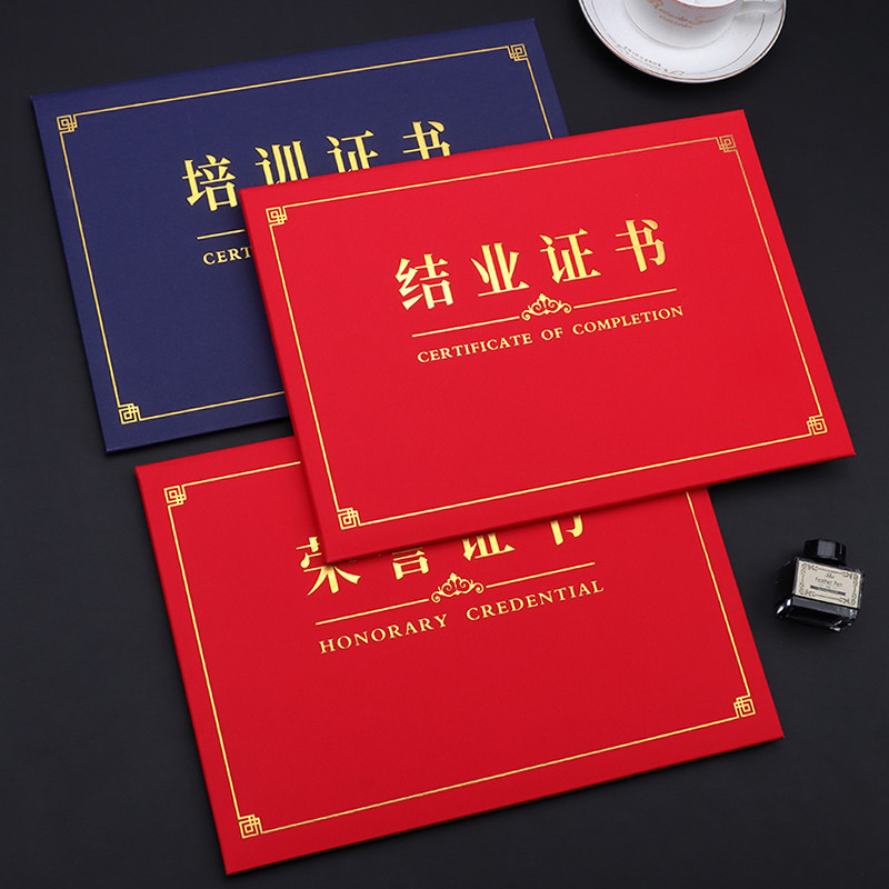 结业证书封皮定做外壳上岗培训证书进修岗位职业技能等级封面蓝色a4结题烫金聘书定制荣誉证书订做打印