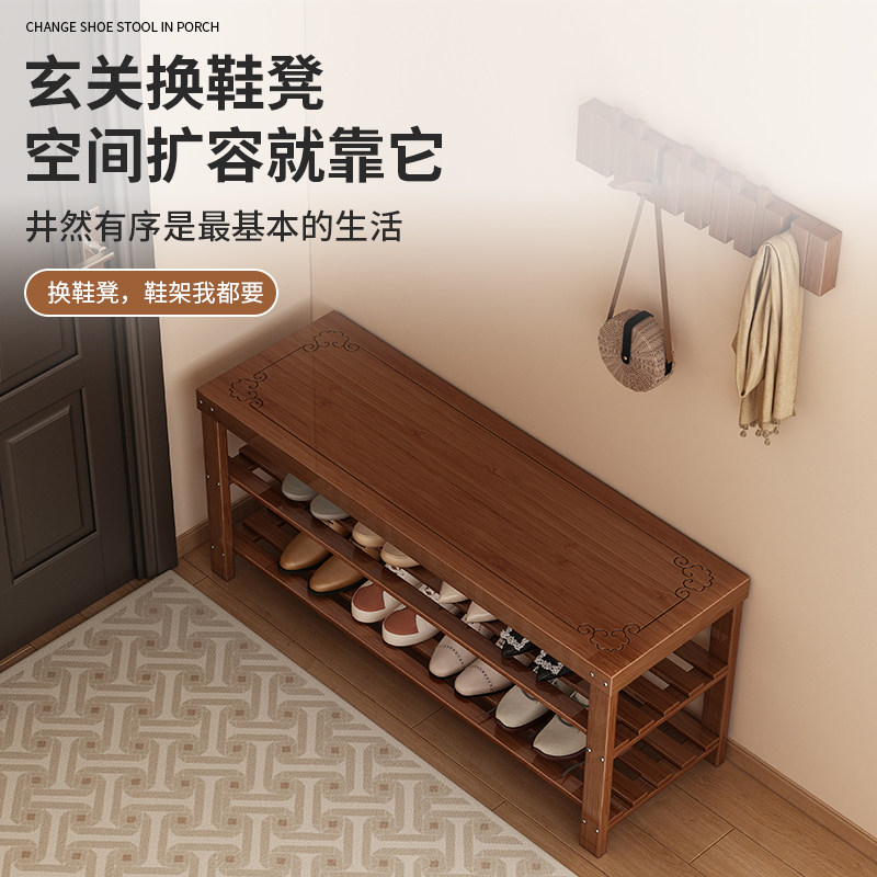 换鞋凳门口家用入户坐凳一体可坐实木鞋柜入门长条穿鞋凳进门鞋架